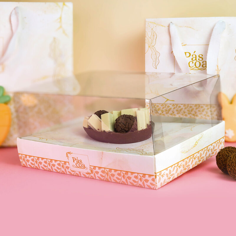 Embalagem para 4 doces 9x9x4cm com visor e berço, Branco – Basics
