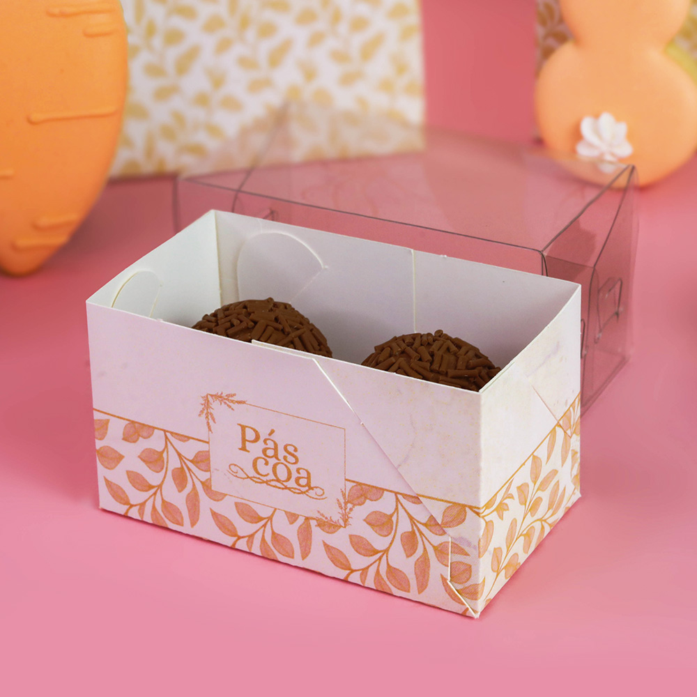 Nossa caixa para 2 doces, desenvolvida especialmente para a Páscoa, é a maneira ideal de expressar seu reconhecimento de forma doce e significativa. Com um design encantador e funcionalidade impecável, ela acomoda dois doces deliciosos, tornando qualquer presente ainda mais especial.