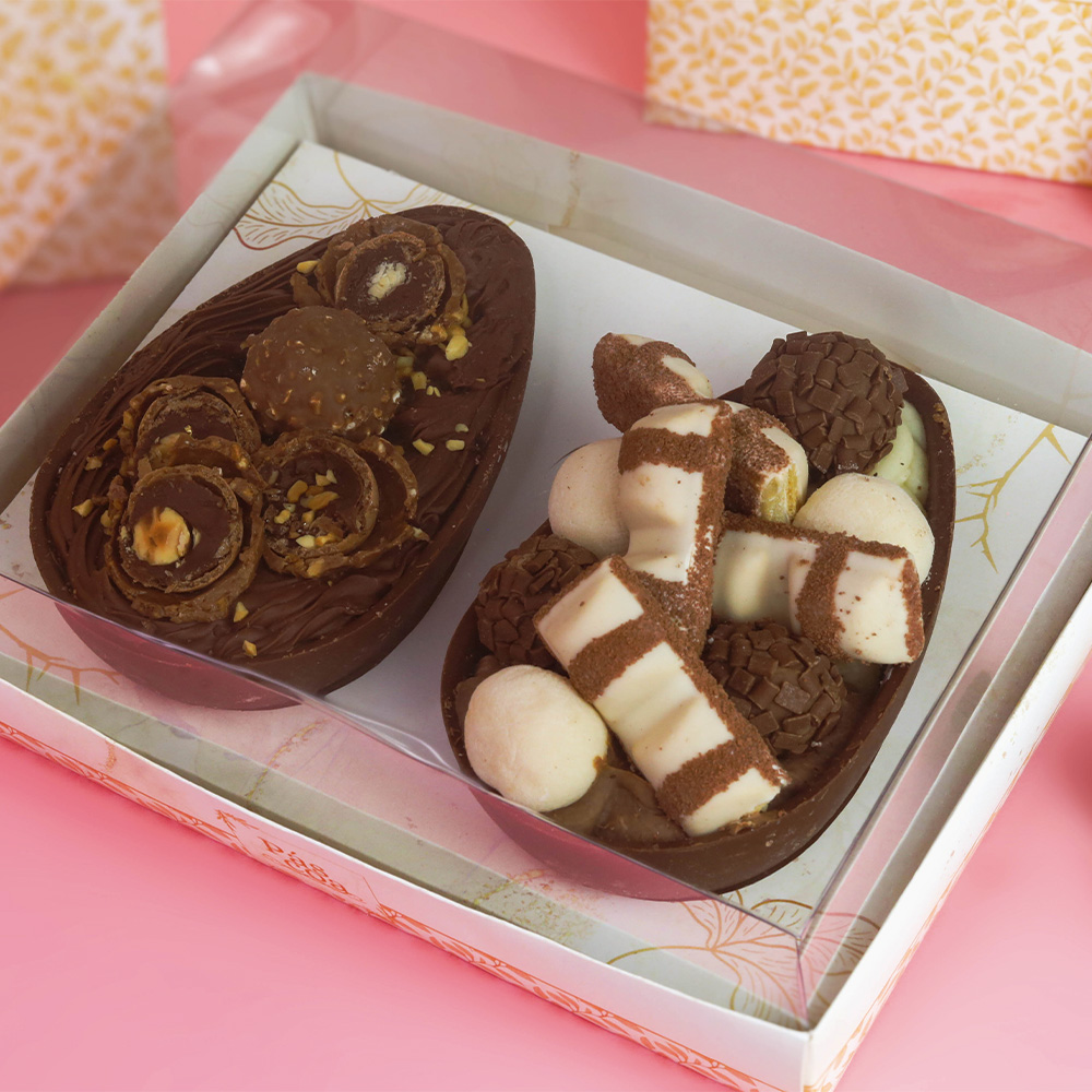 Pensada e desenvolvida para acomodar Ovos de Colher ou Ovos Gourmet esta embalagem pode receber 2 unidades de ovos de 250gr.