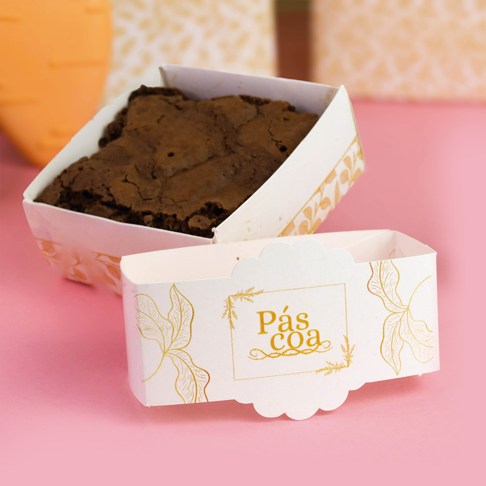 A Embalagem para Brownie com Cinta é a solução ideal para embalar e apresentar seus deliciosos brownies, pães de mel e palhas italianas de maneira prática e sofisticada.