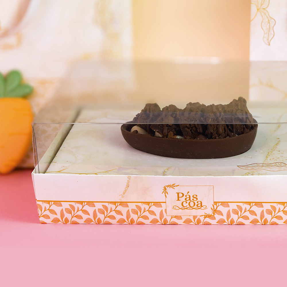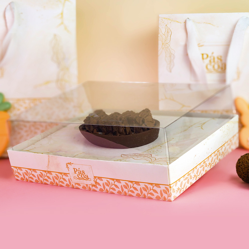 A Base é feita é feita em papel resistente que está preparado para suportar o peso dos ovos mega recheados que você irá produzir este ano.