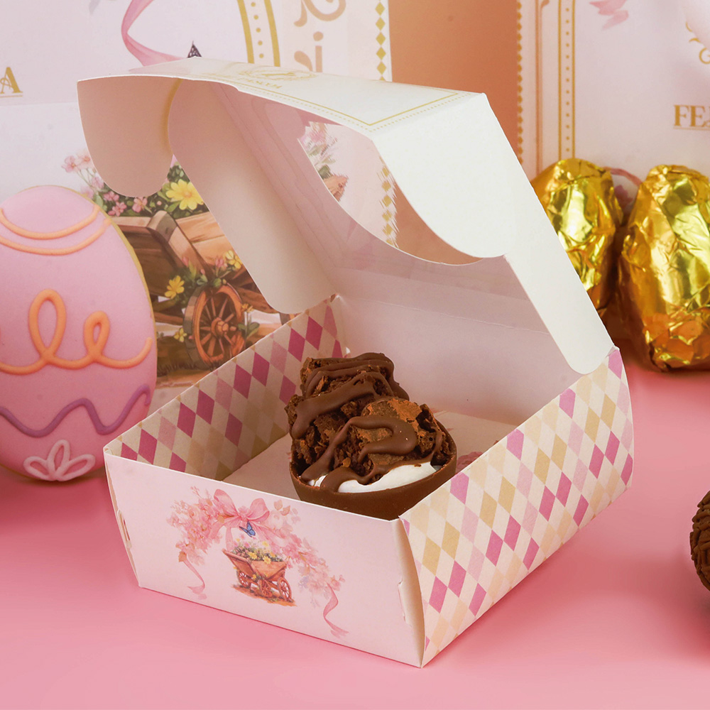 A Caixa para 1 Ovo de 50g com visor e berço é a escolha ideal para quem deseja valorizar ovos de Páscoa artesanais, lembrancinhas e pequenos presentes de forma prática e elegante.O visor transparente permite que o cliente visualize o ovo sem a necessidade de abrir a embalagem, agregando valor ao produto e aumentando a atratividade na vitrine. Já o berço interno foi desenvolvido para acomodar perfeitamente o ovo de 50g, evitando deslocamentos e garantindo mais segurança durante o transporte.
