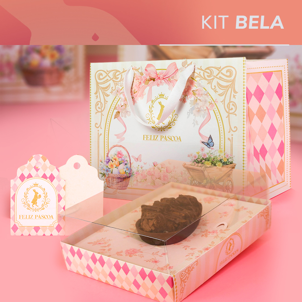 O KIT PÁSCOA BELA foi desenvolvido para quem busca praticidade, apresentação impecável e um visual que valoriza cada detalhe do produto. Um kit completo que une funcionalidade, elegância e versatilidade, perfeito para montar presentes de Páscoa sofisticados, profissionais e cheios de personalidade.