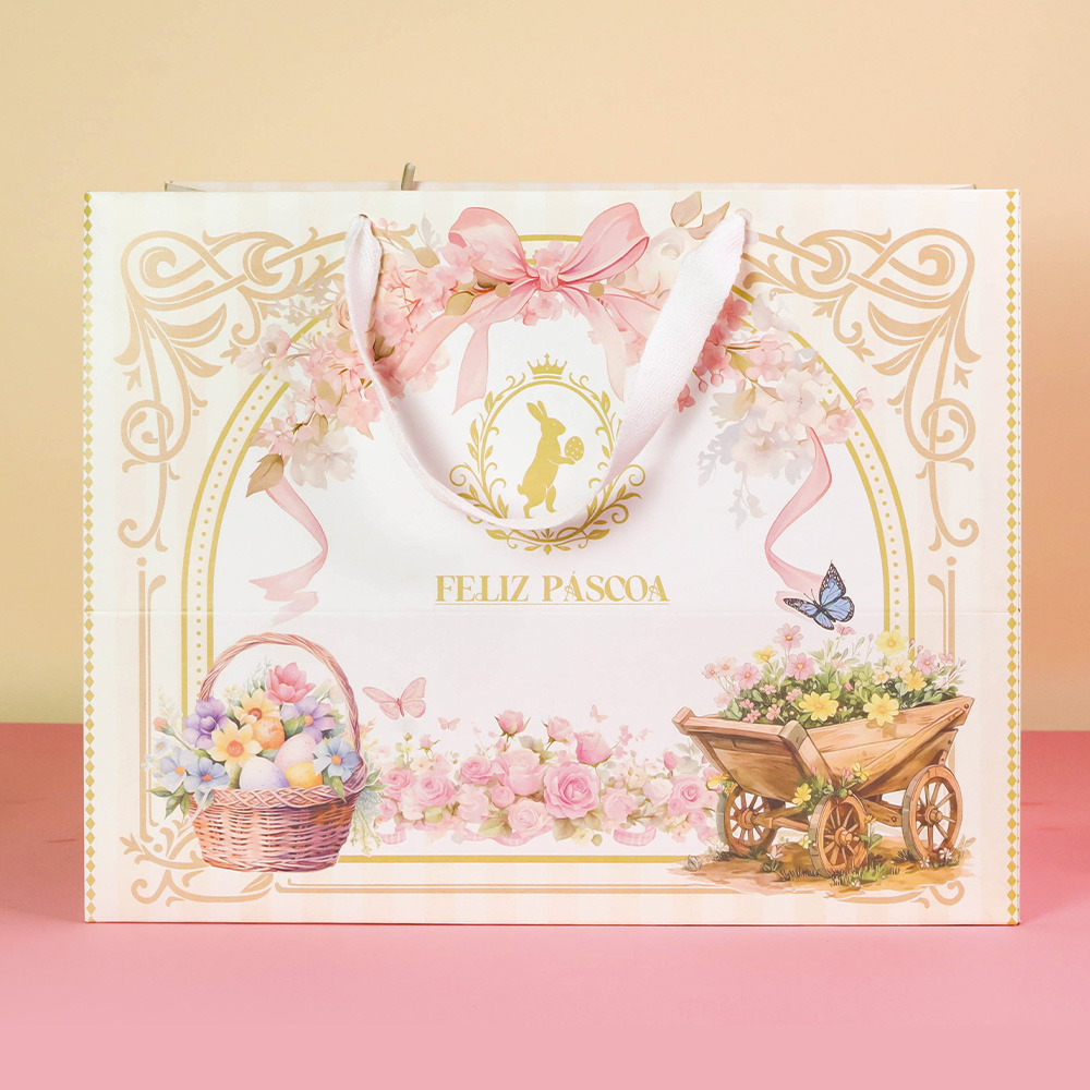 O toque de elegância que faz toda a diferença na entrega. Produzida em papel de altíssima qualidade, essa sacola é resistente, sustentável e perfeita para acomodar embalagens de ovos, kits e doces com segurança e estilo.