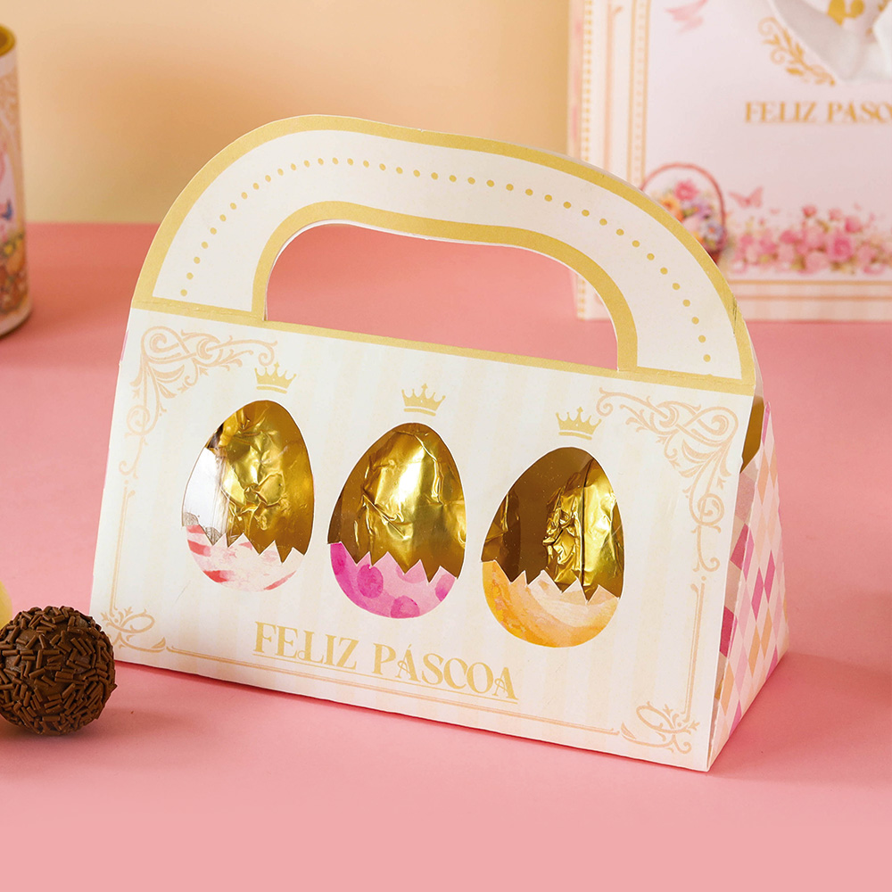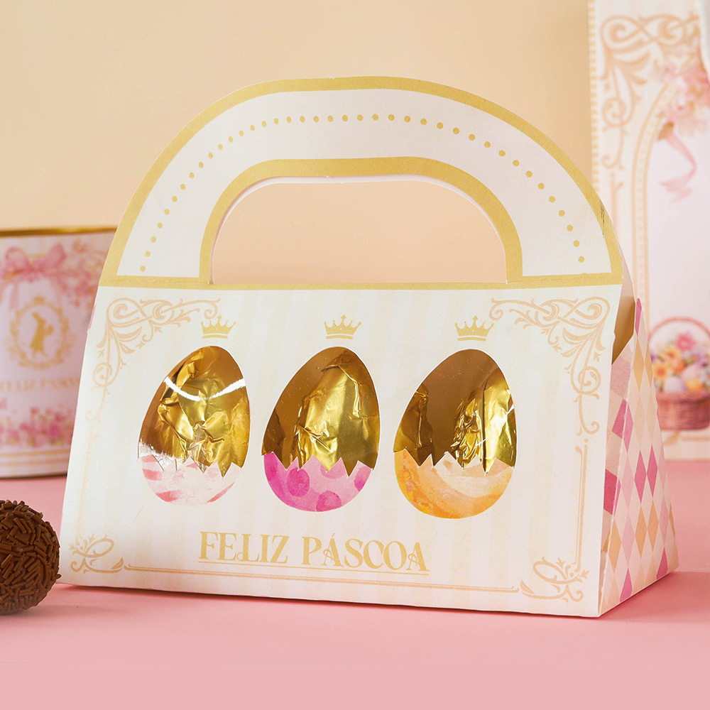 Essa embalagem é muito utilizada por confeiteiras, chocolatiers e empreendedores que buscam uma apresentação diferenciada para mini ovos de chocolate. Também permite personalização externa com adesivos, tags e fitas, fortalecendo a identidade da marca e tornando o produto ainda mais especial.Maleta para mini ovos de Páscoa