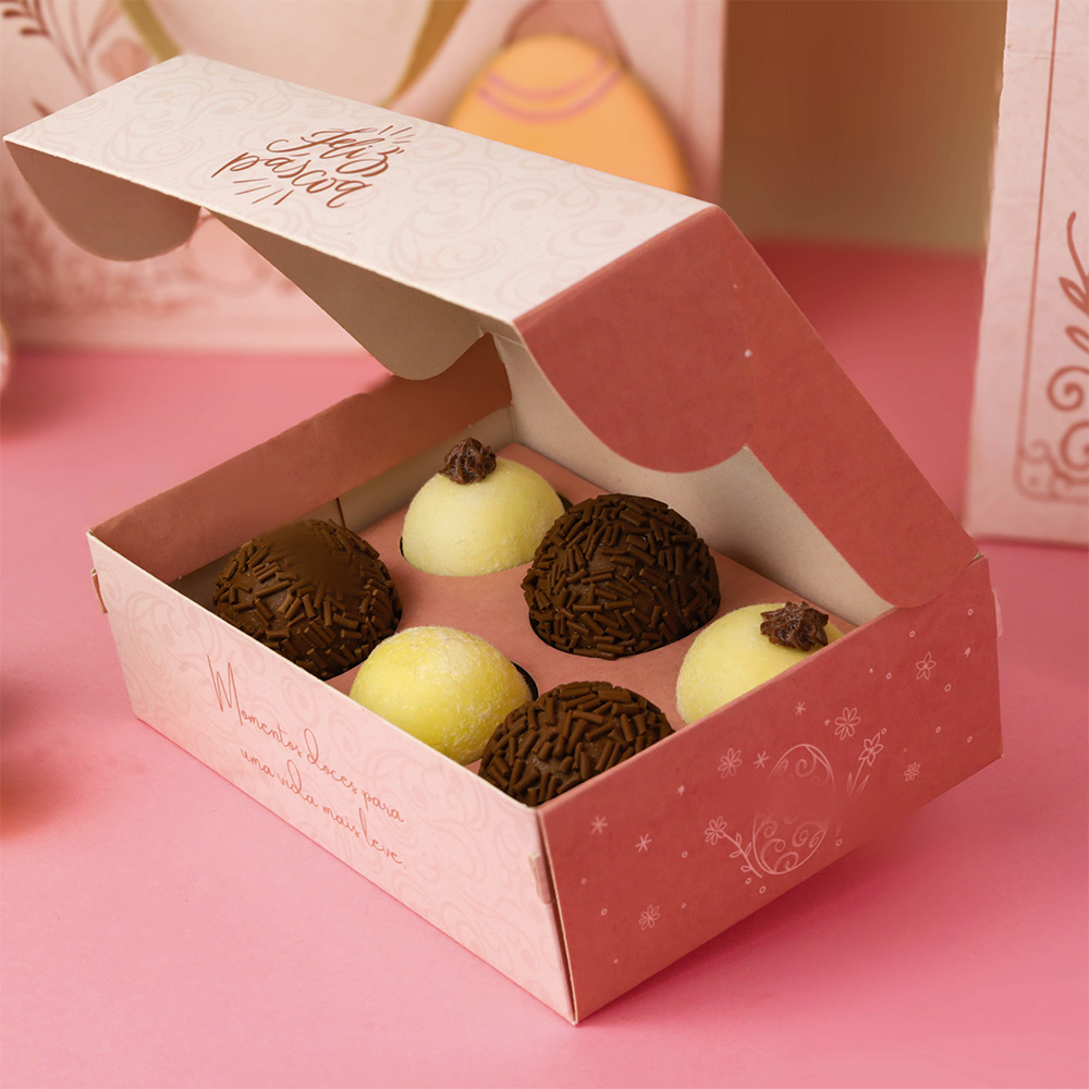 A embalagem para 6 doces foi projetada para uso em diversos tipos de doces.