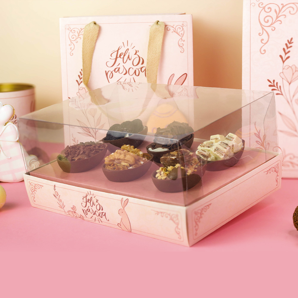 A embalagem para Kit Degustação foi pensada em você começar a vender os seus ovos ANTES DO DOMINGO DE PÁSCOA! Com ela você pode montar kits de sabores, para que o cliente possa experimentar todo o seu cardápio, e selecionar qual sabor ele mais gostou… Mas, temos relatos de que alguns clientes compram e recompram esse kit, para variar os sabores todo dia!