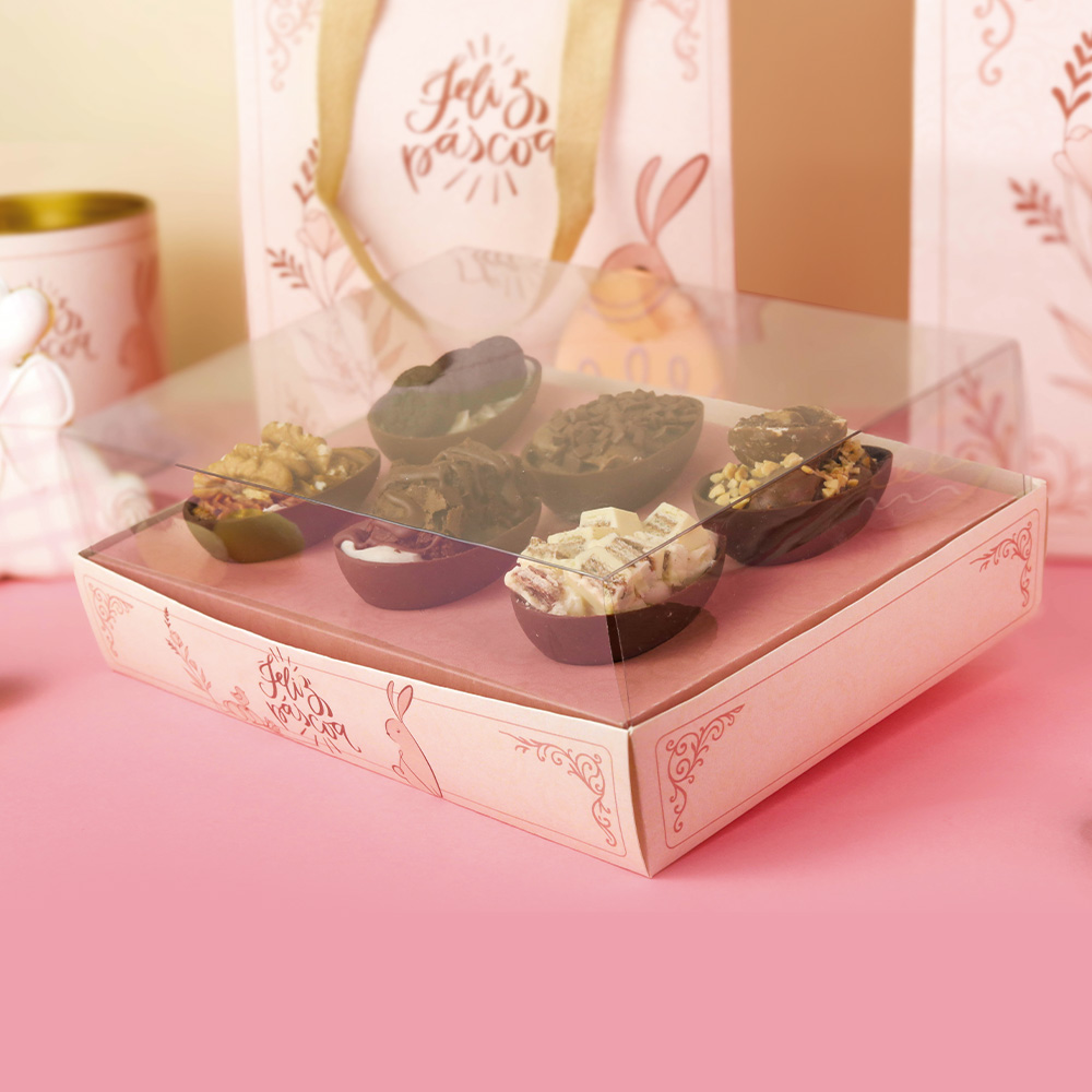 A embalagem para Kit Degustação foi pensada em você começar a vender os seus ovos ANTES DO DOMINGO DE PÁSCOA! Com ela você pode montar kits de sabores, para que o cliente possa experimentar todo o seu cardápio, e selecionar qual sabor ele mais gostou… Mas, temos relatos de que alguns clientes compram e recompram esse kit, para variar os sabores todo dia!