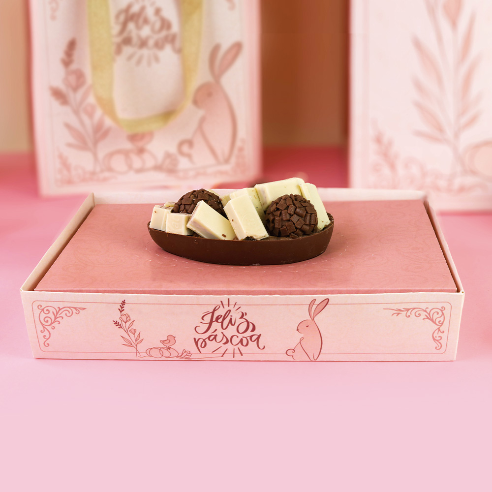 Pensada e desenvolvida para acomodar Ovos de Colher ou Ovos Gourmet, esta embalagem pode receber 1 unidade de 150gr, 250gr, 350gr ou 500gr