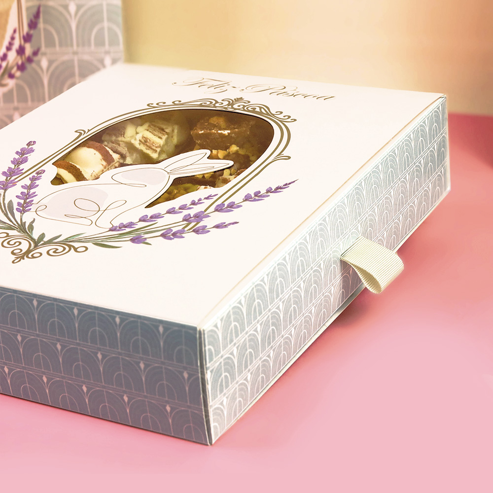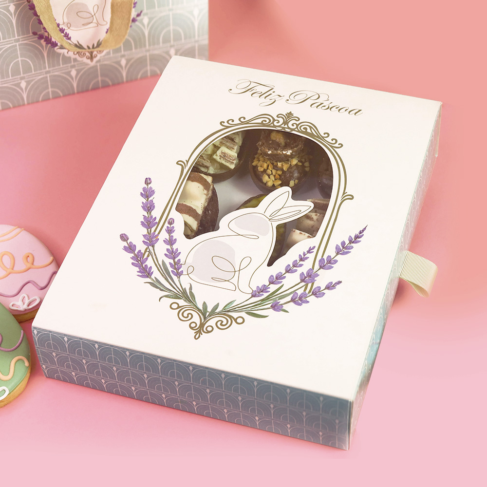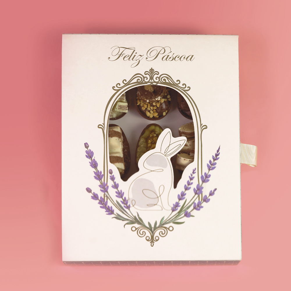 Seu formato gaveta com puxador proporciona uma abertura elegante e uma experiência diferenciada para o cliente. O visor transparente permite a visualização completa dos 9 ovos, destacando cores, recheios e acabamentos, tornando a embalagem extremamente atrativa para vitrines, presentes e vendas premium.