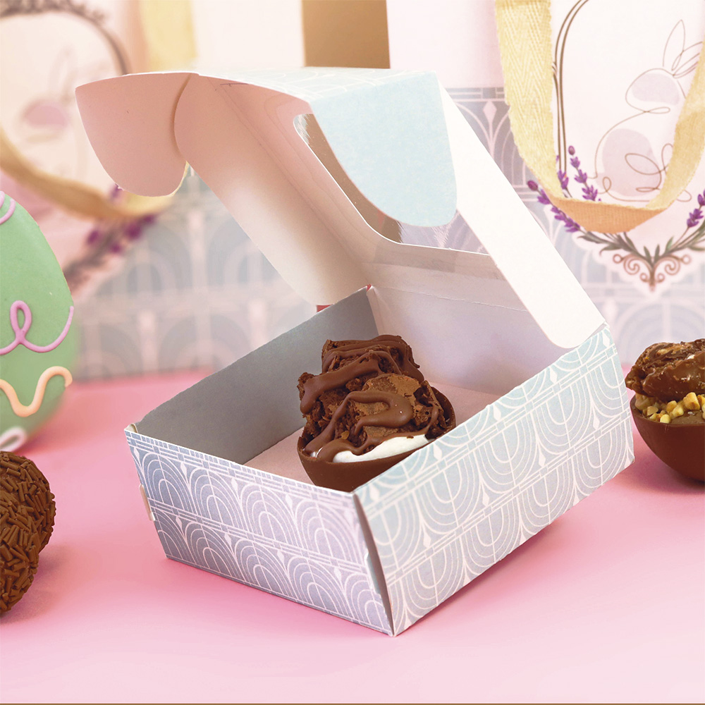 A Caixa para 1 Ovo de 50g com visor e berço é a escolha ideal para quem deseja valorizar ovos de Páscoa artesanais, lembrancinhas e pequenos presentes de forma prática e elegante.O visor transparente permite que o cliente visualize o ovo sem a necessidade de abrir a embalagem, agregando valor ao produto e aumentando a atratividade na vitrine. Já o berço interno foi desenvolvido para acomodar perfeitamente o ovo de 50g, evitando deslocamentos e garantindo mais segurança durante o transporte.