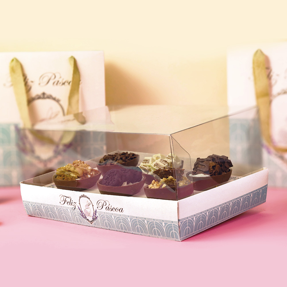 A embalagem para Kit Degustação foi pensada em você começar a vender os seus ovos ANTES DO DOMINGO DE PÁSCOA! Com ela você pode montar kits de sabores, para que o cliente possa experimentar todo o seu cardápio, e selecionar qual sabor ele mais gostou… Mas, temos relatos de que alguns clientes compram e recompram esse kit, para variar os sabores todo dia!