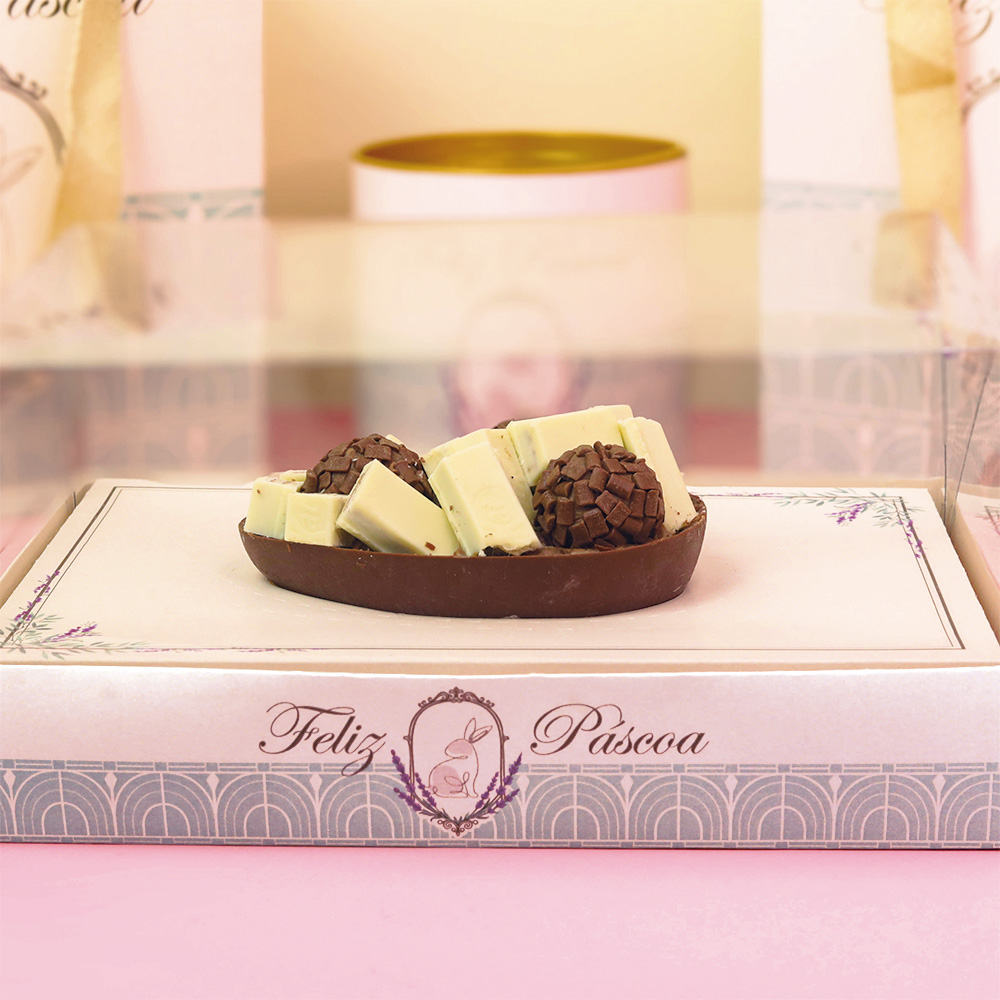 Pensada e desenvolvida para acomodar Ovos de Colher ou Ovos Gourmet, esta embalagem pode receber 1 unidade de 150gr, 250gr, 350gr ou 500gr