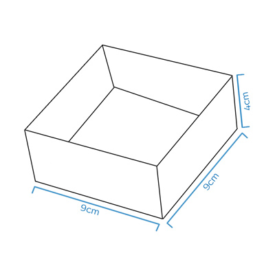 Tamanho da Embalagem (área útil): 9,3cm de comprimento x 9,3cm de largura x 4cm de altura